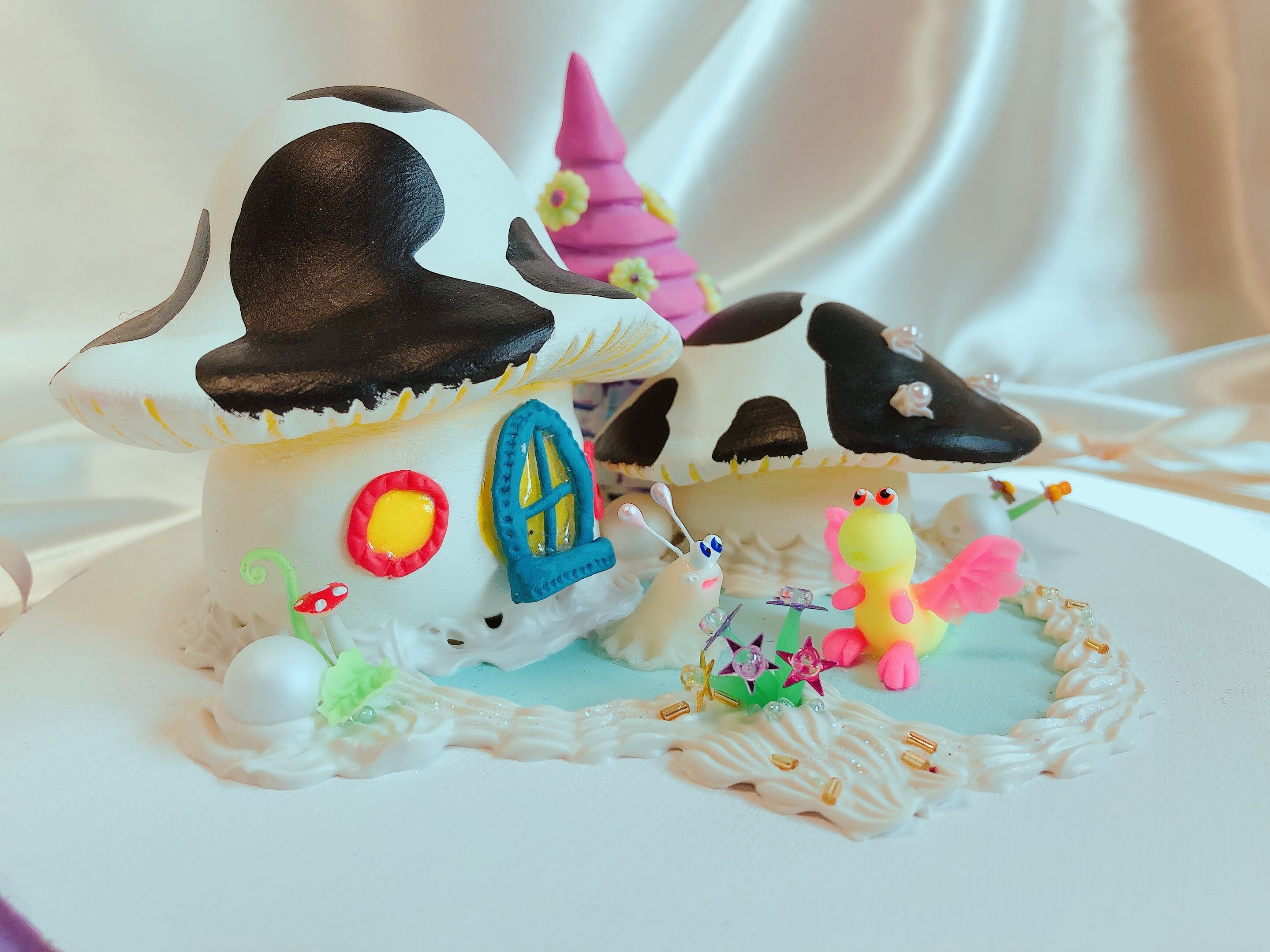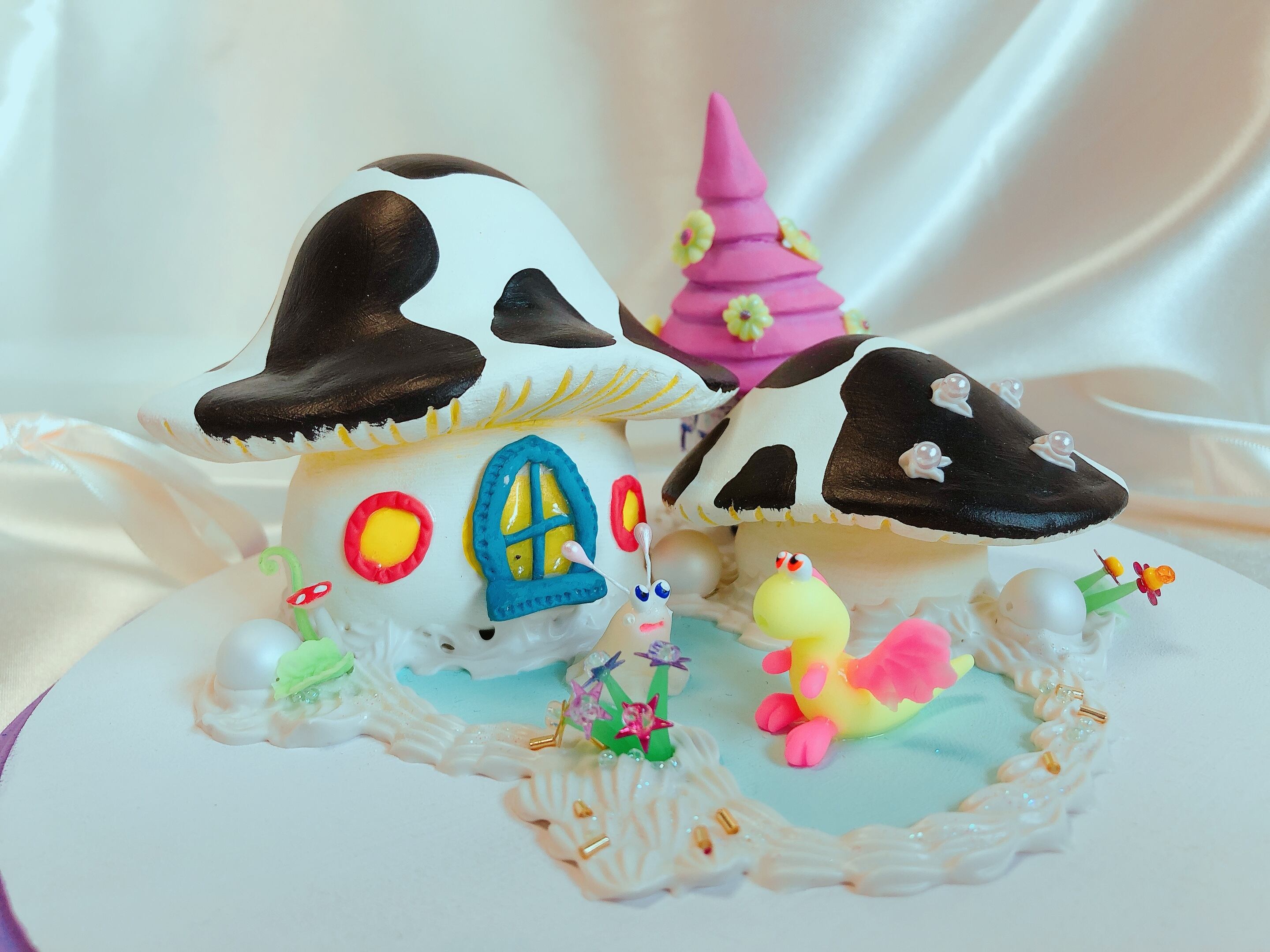 素材 : 樹脂粘土 石粉粘土 木材 アクリル絵の具 ビーズ スパンコール等