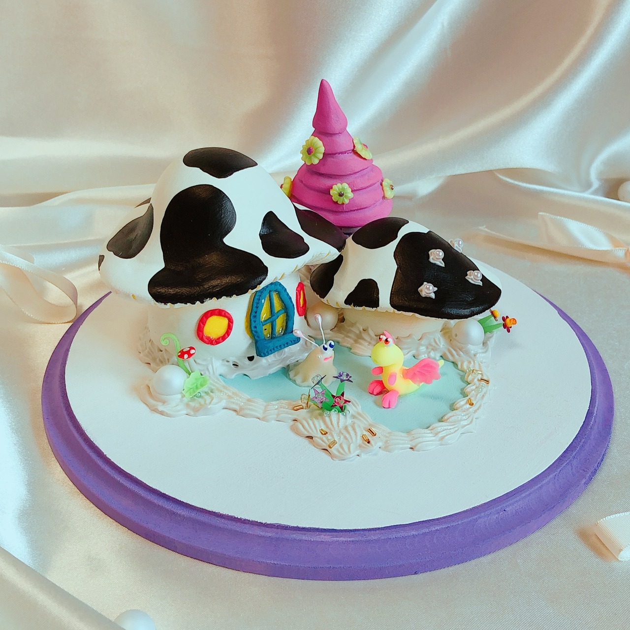 牛柄キノコのお家の前ではペタユカちゃんとぱたリューちゃんが今日もいい天気だね〜ねむいね〜と穏やか平和なトークをしてます。