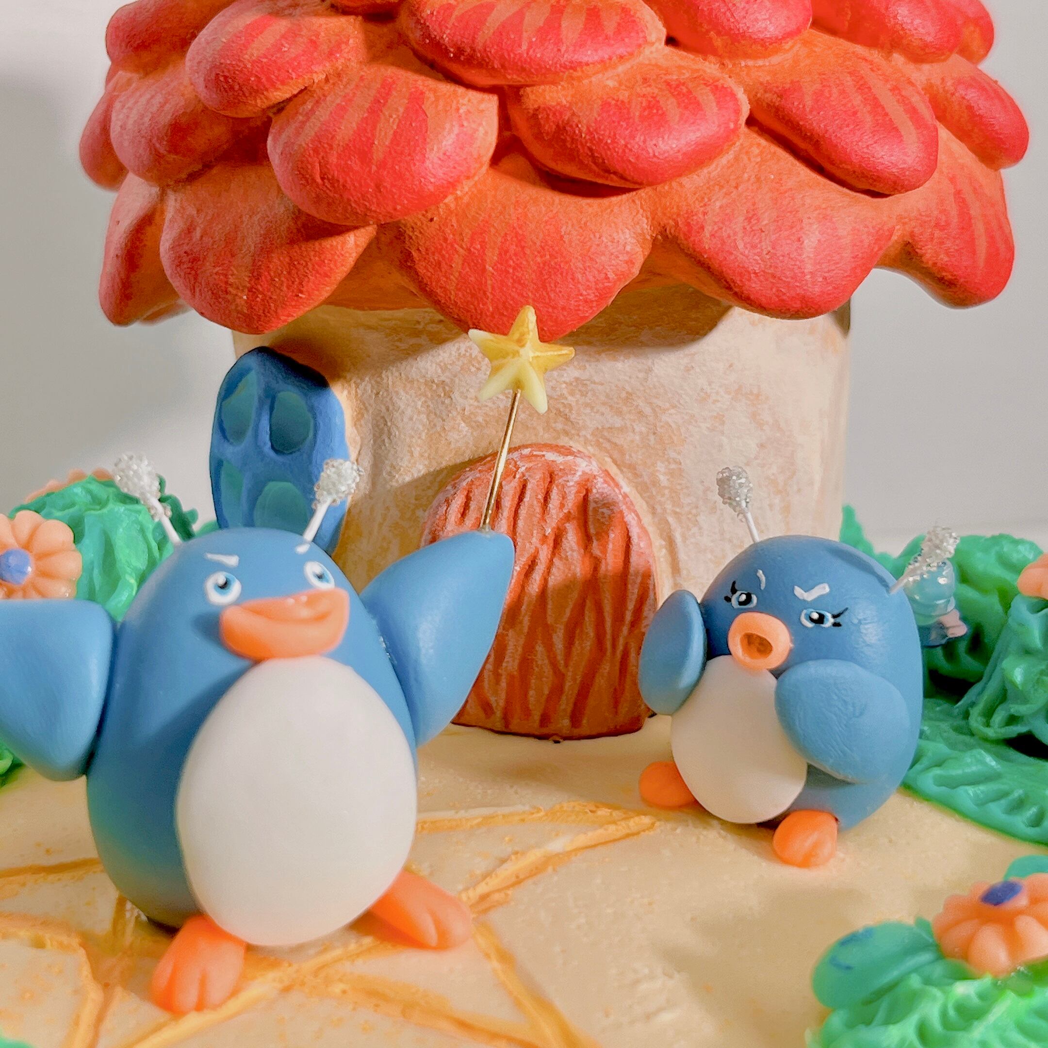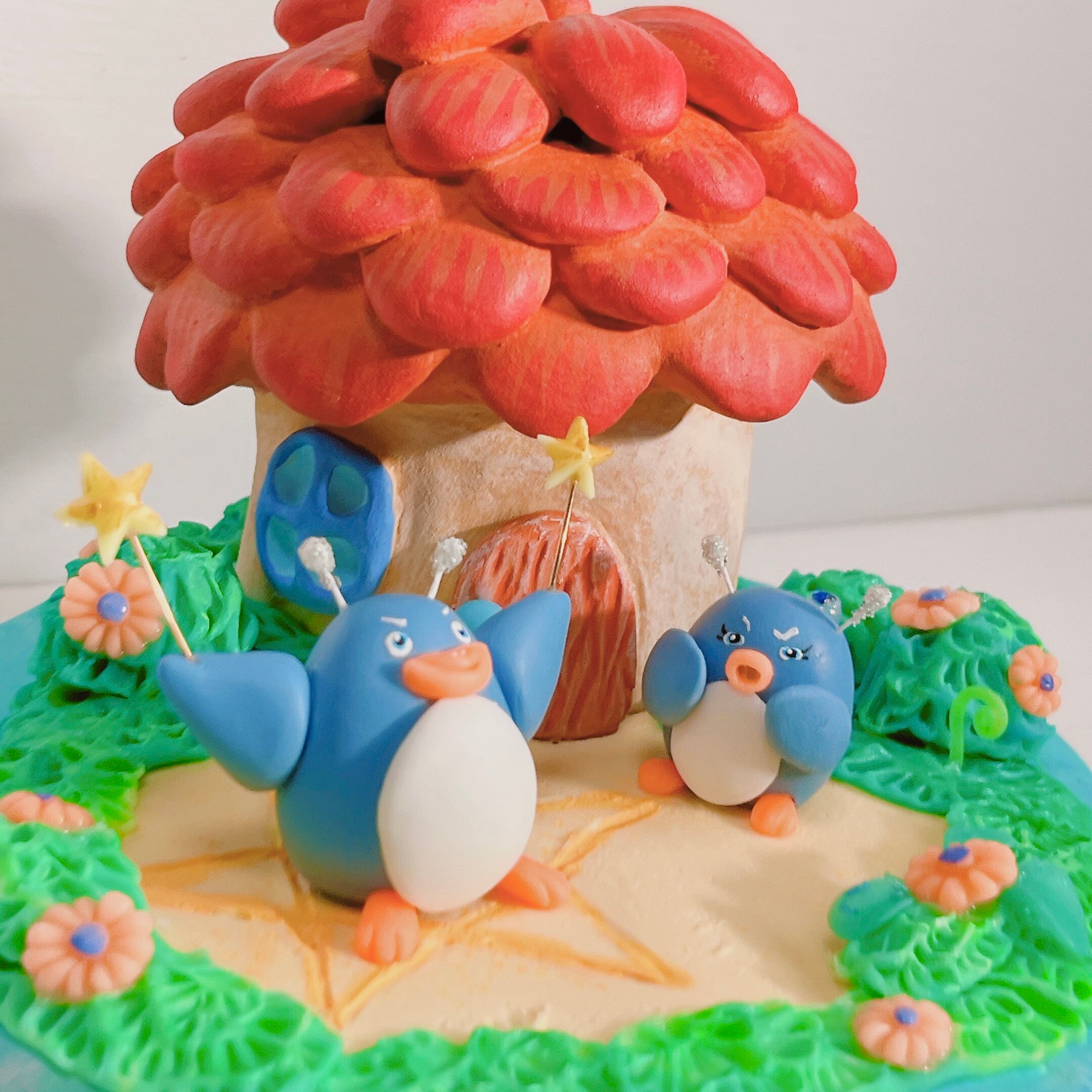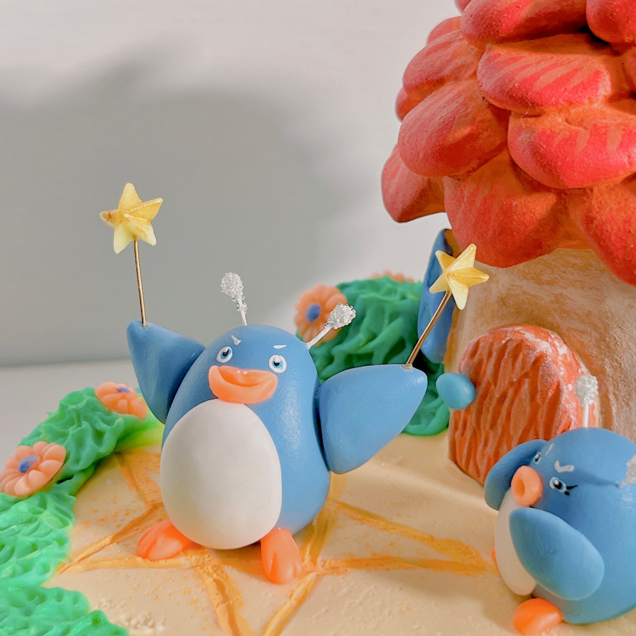 宇宙ペンギンのご夫妻がかわいいお家の前の庭でなにやらしている様子、、、夫の(ケンジ/40歳)は昔から魔方陣でモンスターを召喚するのが夢であらゆる魔方陣を勉強していた。そんな今日は星の降る日、降ってきた星を杖につけて今日こそは召喚できるぞ!!と意気込んで庭におおきくてシンプルな星の魔方陣を書き、いざ!召喚!!そんな夫を見てやれやれと妻(たえこ/38歳)このあと何か召喚できたのだろうか?そろそろ息子が学校から帰ってくるころです。