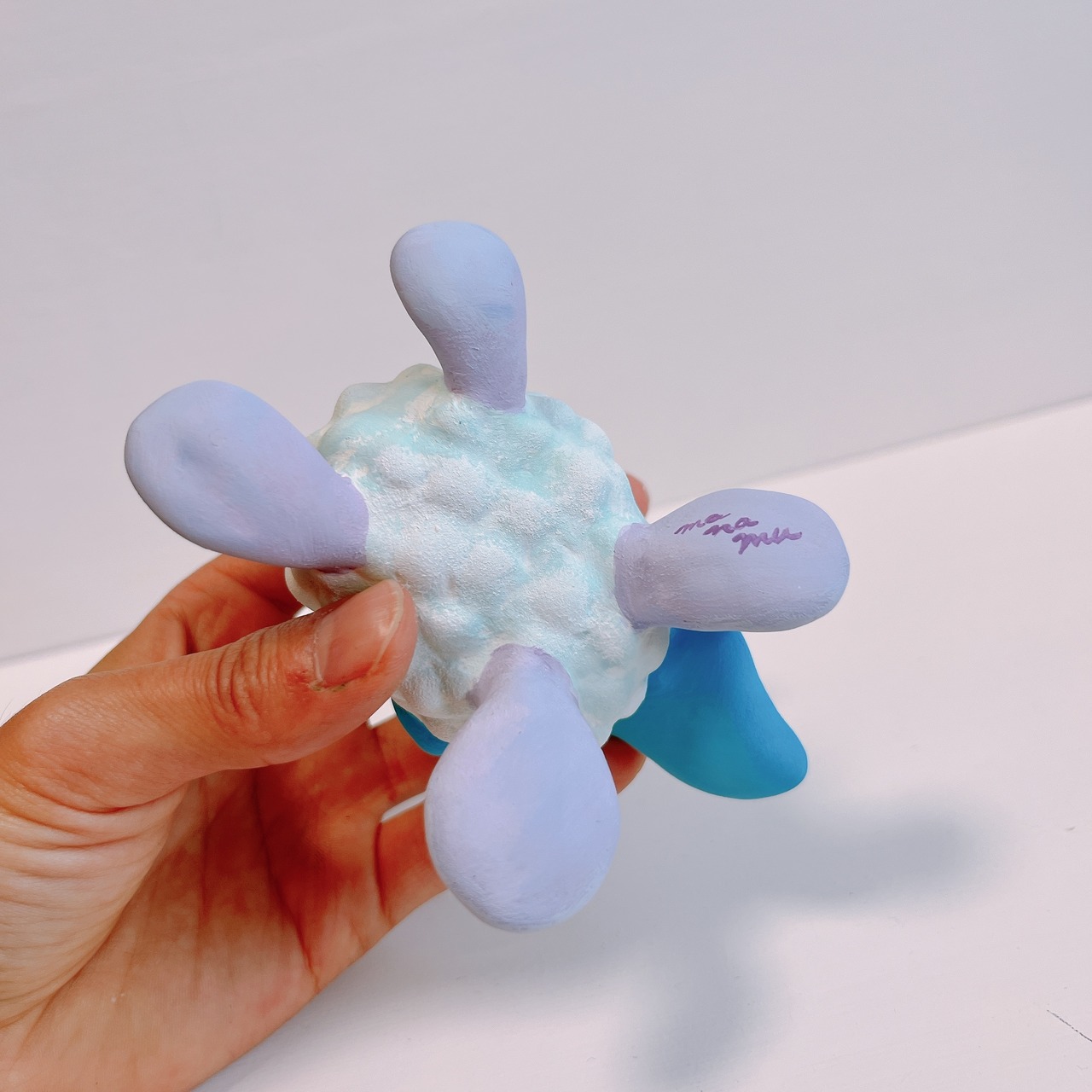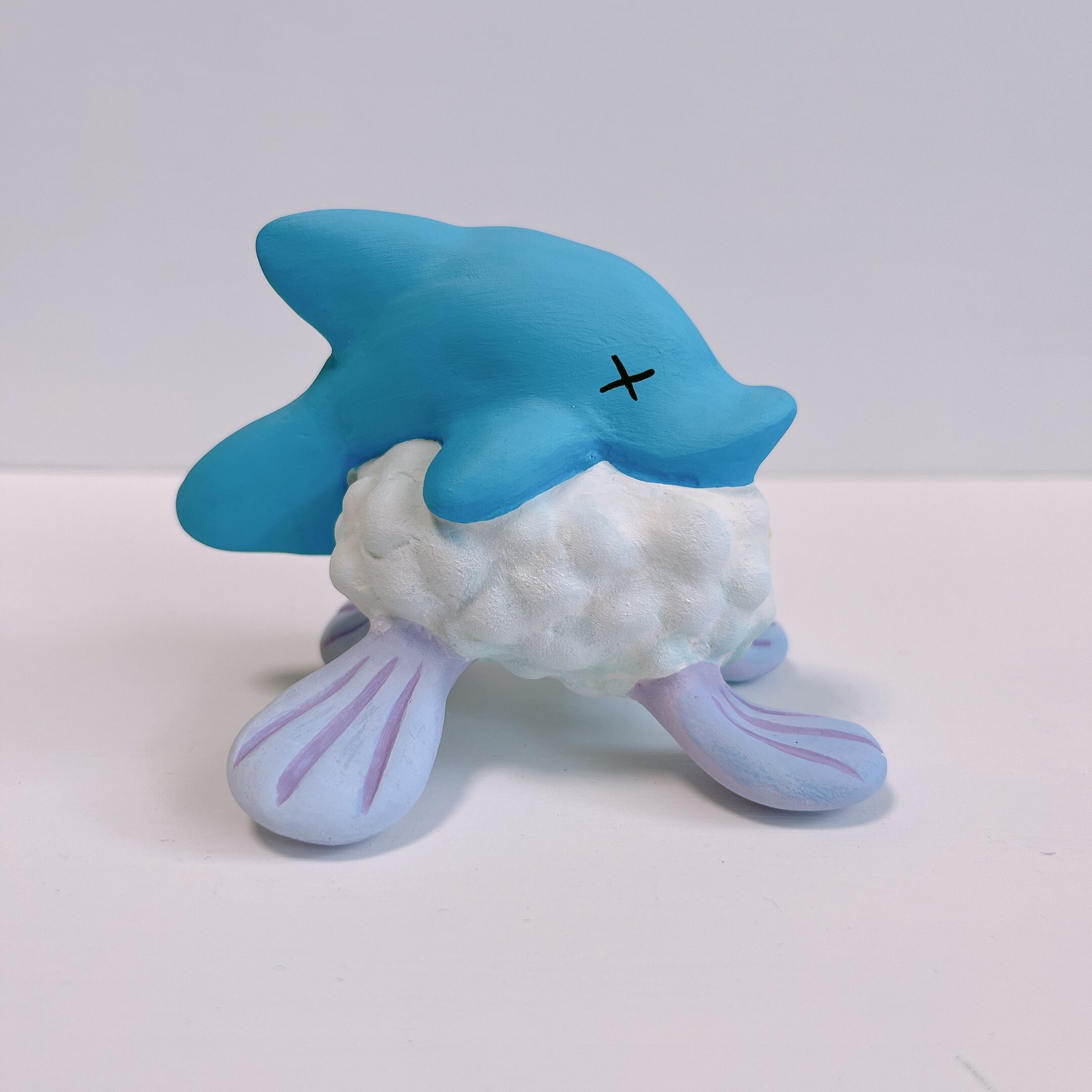 寿司を作る際にまな板にこぼされてしまった酢飯のつぶがあつまってうまれたモンスター、捨てられた魚の尾ひれが手足となっている。自分も立派なお寿司になりたくて近くに落ちていた板前さんの捨てたイルカのおもちゃを頭にのせている。